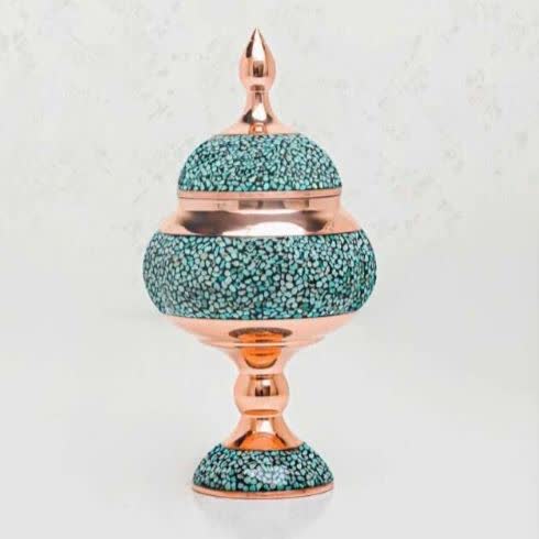 شکلات خوری پایه دار | فیروزه کوبی روی مسدکوری و تزئینی