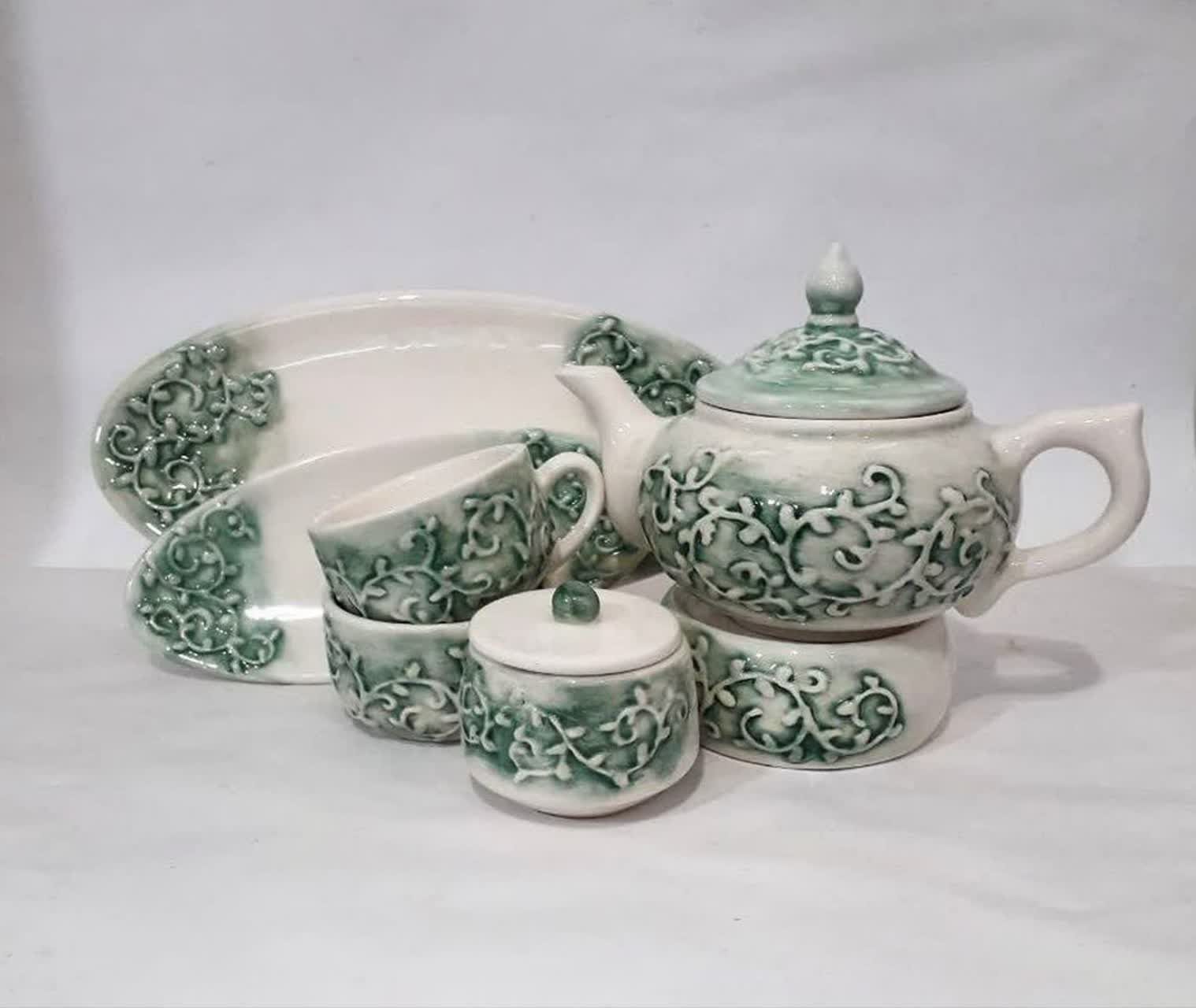 سرویس چای خوری گل برجسته دو نفره | سرامیکیسرامیکی
